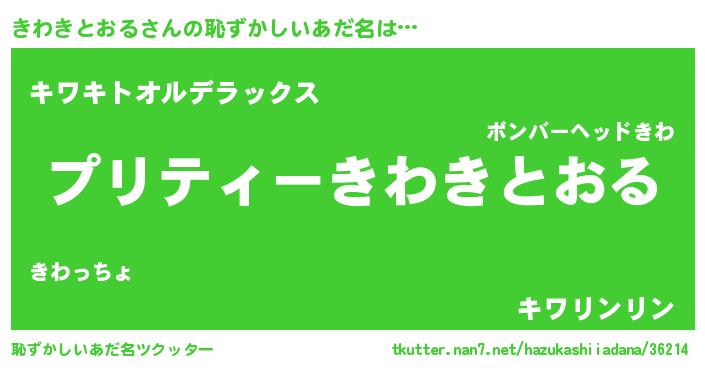 | ヒーロー風カッコイイあだ名 | 『スーパーキワキトオル』『天弓騎士キワ』 |