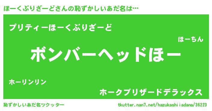 | 男性向けラノベタイトル風あだ名 | 『転生したらほーくぶりざーどだった件』 |