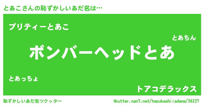 | 欧米人風あだ名 | 『とあこ・ステッグマイヤー』 |