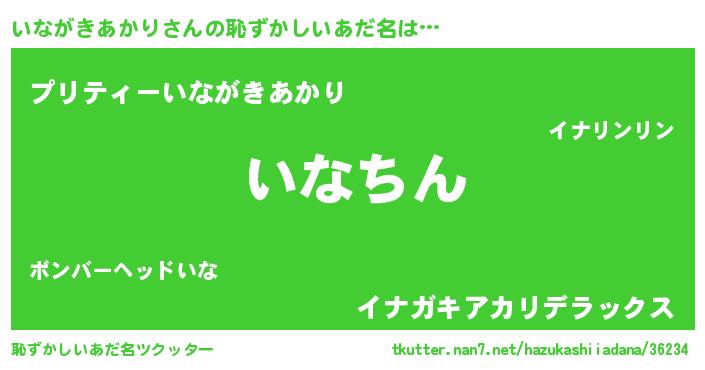 | ヘコむあだ名 | 『いながきあかり(震え声)』『いなふぇ~』 |