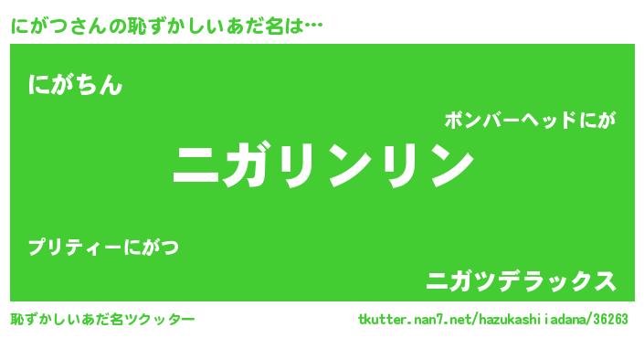 意味不明あだ名 | 『とにかく怪しいにがつ』『自称にがつ』 |