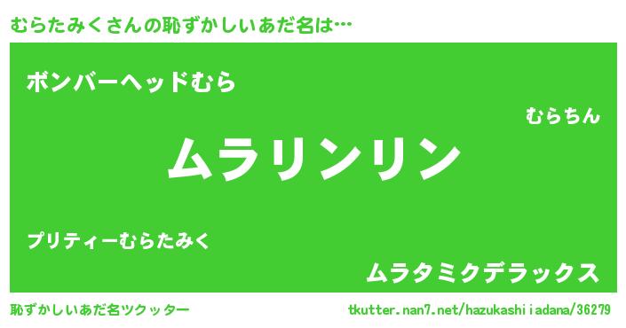 | ポケモン風あだ名 | 『ヒムラタミク』『ムックウザ』 |