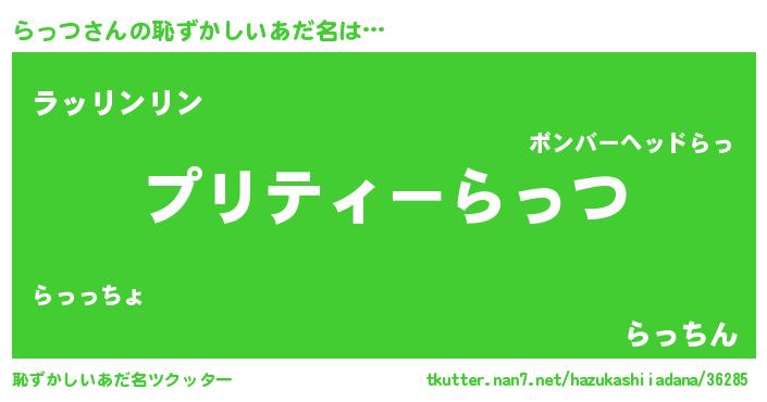 | 意味不明あだ名 | 『ペロリンらっつ』『永久保存らっつ』 |