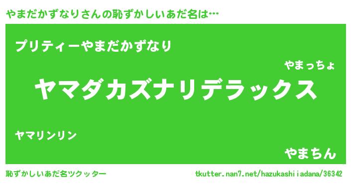 | 男性向けラノベタイトル風あだ名 | 『Re:やまだかずなりから始める異世界生活』 |