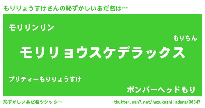 | 女子向けラノベタイトル風あだ名 | 『もりりょうすけなんてお断りですっ。』 |