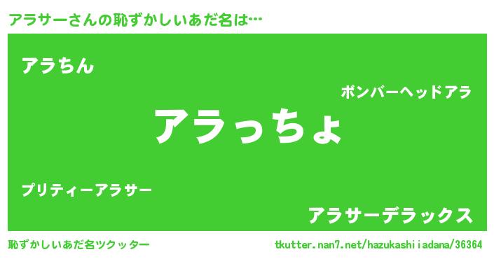 | 可愛いあだ名 | 『アラぷりん』『アラちー』 |
