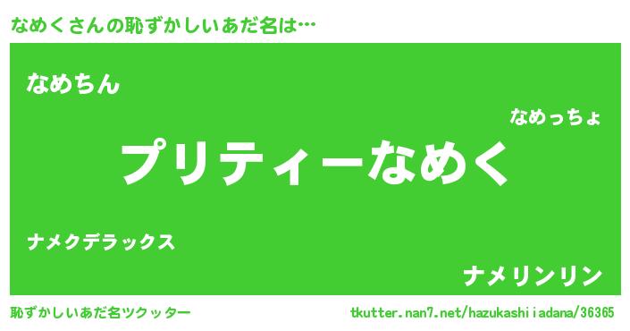 | ヘコむあだ名 | 『なめっふぃ~』『なめく(笑)』 |