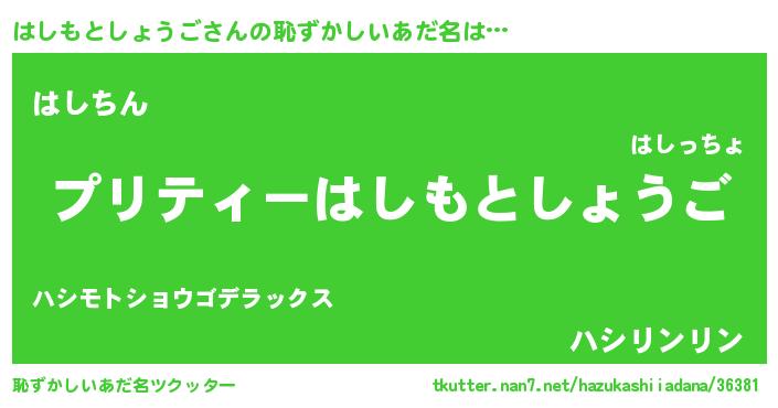 | 意味不明あだ名 | 『住所不定無職はしもとしょうご(4歳)』 |