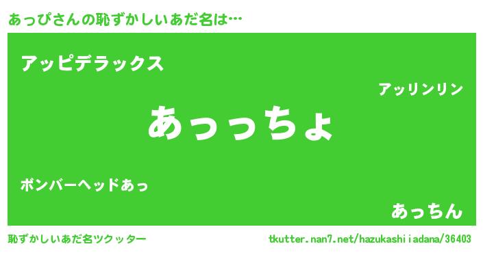| 女子向けラノベタイトル風あだ名 | 『あっぴ伯爵の花嫁』『闇のあっぴ』 |