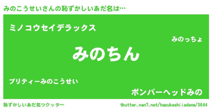 | 意味不明あだ名 | 『住所不定無職みのこうせい(9歳)』 |