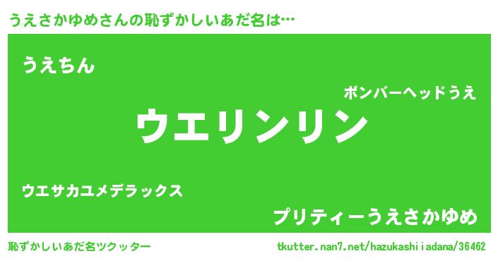 | ポケモン風あだ名 | 『ヒウエサカユメ』『ゼニウエ』 |