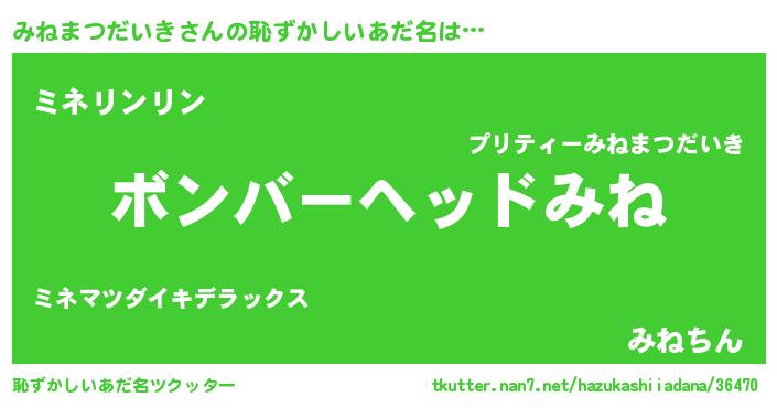 | ヘコむあだ名 | 『みねっちょ』『みねまつだいき(爆)』 |
