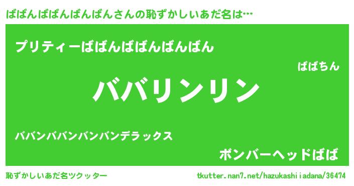 | 男性向けラノベタイトル風あだ名 | 『冴えないばばんばばんばんばんの育てかた』 |