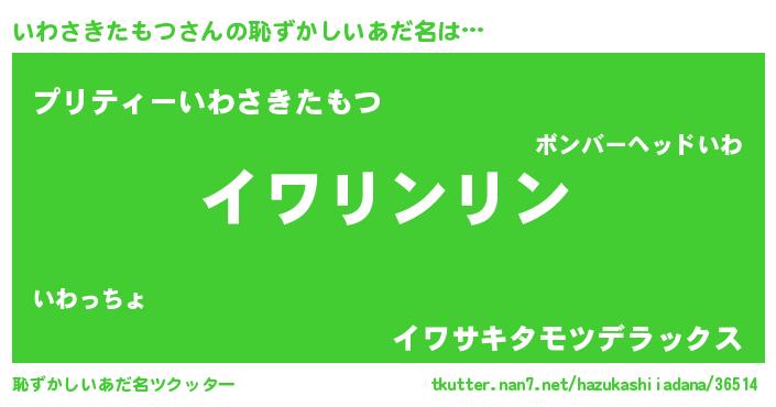 | 意味不明あだ名 | 『とにかく怪しいいわさきたもつ』 |