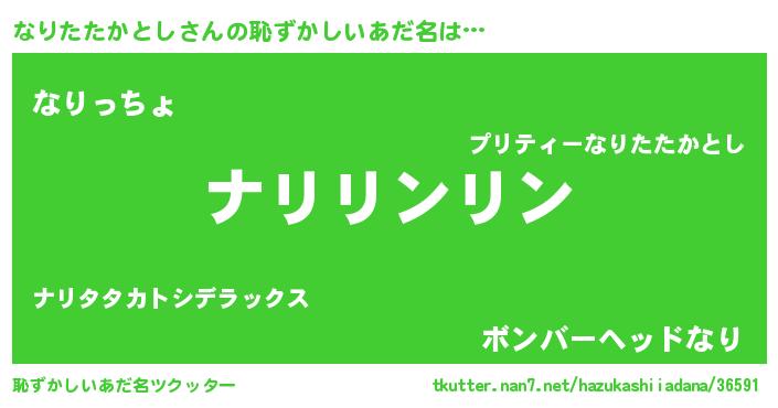 | 男性向けラノベタイトル風あだ名 | 『なりたたかとしの嫁は女の子じゃないと思った?』 |