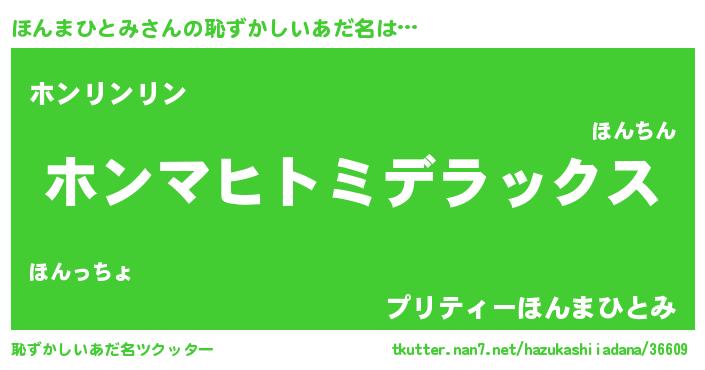 | ポケモン風あだ名 | 『ホンセウス』『ヒホンマヒトミ』 |