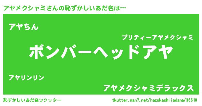 | ヒーロー風カッコイイあだ名 | 『仮面アヤダー』『ネオアヤメクシャミ』 |