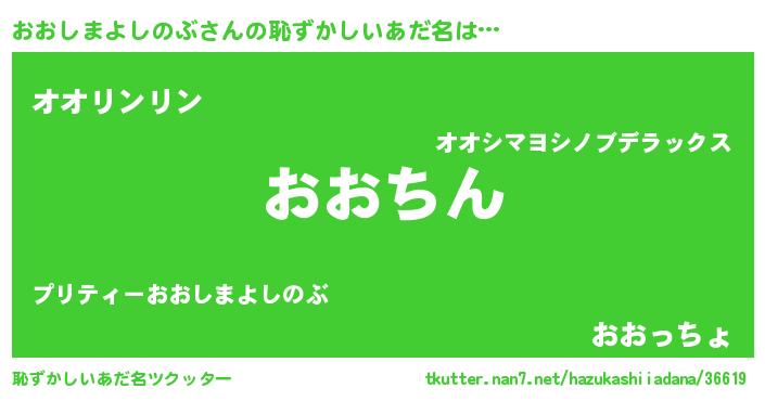 | 可愛いあだ名 | 『おーみん』『おおしまよしのぶママ』 |