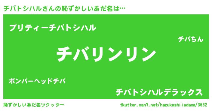 | 意味不明あだ名 | 『とにかく怪しいチバトシハル』 |