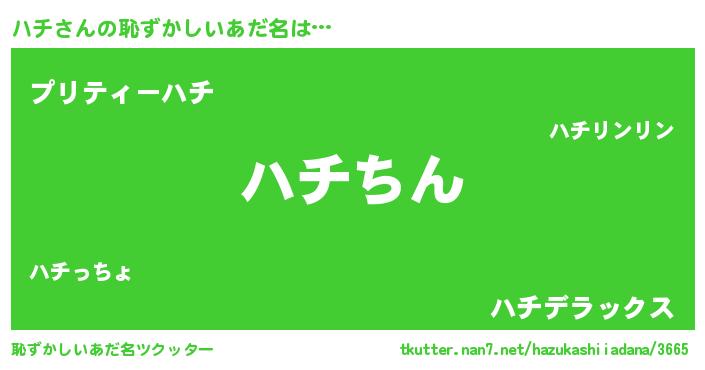 | ヘコむあだ名 | 『ハチ(笑)』『ハチっふぃ~』 |