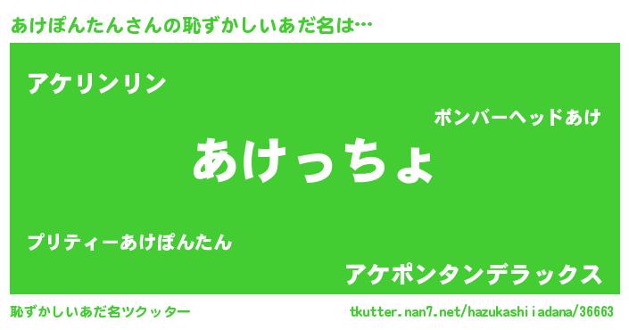 | 意味不明あだ名 | 『あけぽんたんフォーエバー』 |