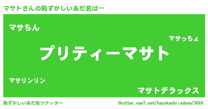 | ヘコむあだ名 | 『マサにゅー』『マサト(笑)』 |
