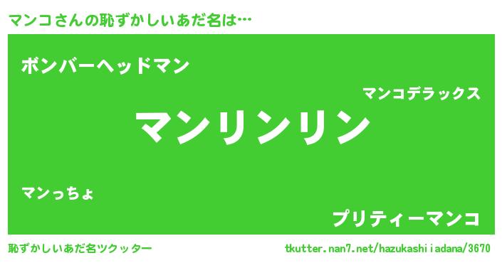 | ポケモン風あだ名 | 『ヒマンコ』『マンゴンZ』『マーンイ』 |
