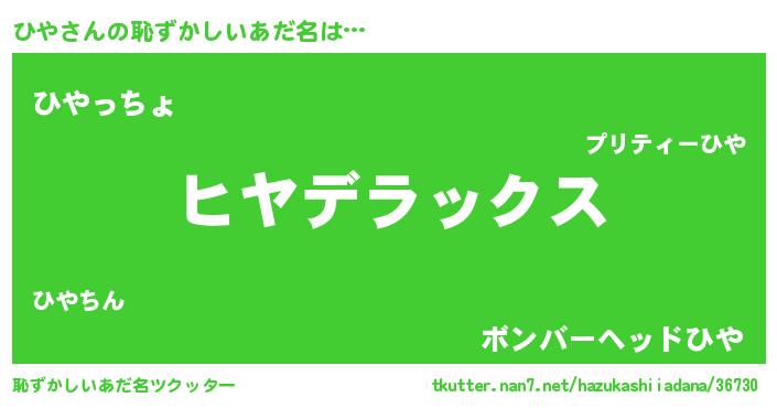 | ヒーロー風カッコイイあだ名 | 『ウルトラ戦士ヒヤ』『ウルトラひやマン』 |