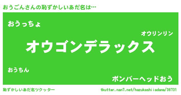 | 意味不明あだ名 | 『住所不定無職おうごん(7歳)』 |