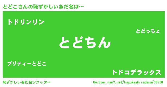 | 男性向けラノベタイトル風あだ名 | 『この素晴らしい世界にとどこを!』 |