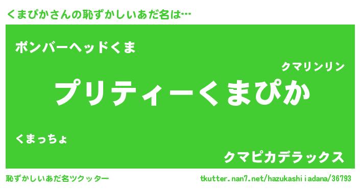 | 意味不明あだ名 | 『ペロリンくまぴか』『自称くまぴか』 |