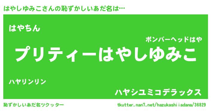 | 男性向けラノベタイトル風あだ名 | 『ハヤシユミコスレイヤー』 |