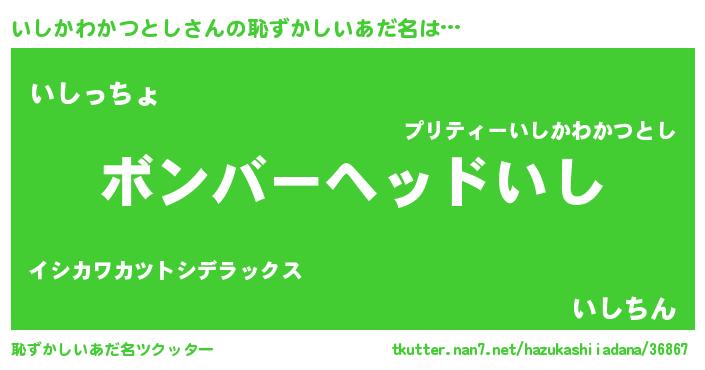 | ヘコむあだ名 | 『豆乳』『いしかわかつとし(苦笑)』 |