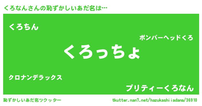 | ヒーロー風カッコイイあだ名 | 『ウルトラくろなんマン』『ネオクロナン』 |