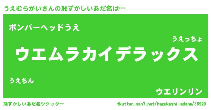 | 欧米人風あだ名 | 『ケンブリッジうえむらかい』 |