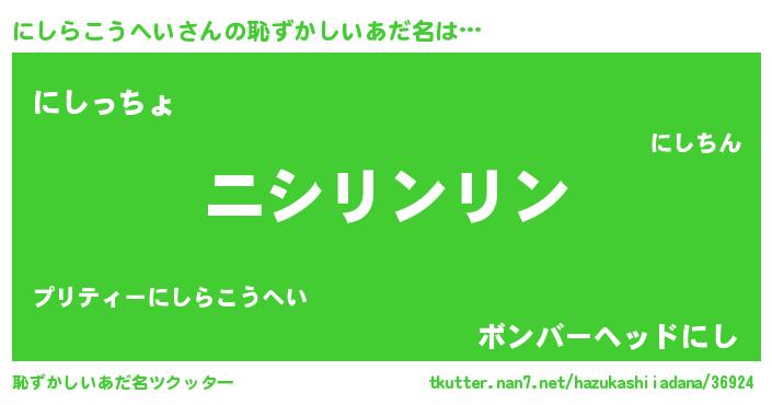 | 意味不明あだ名 | 『とにかく怪しいにしらこうへい』 |
