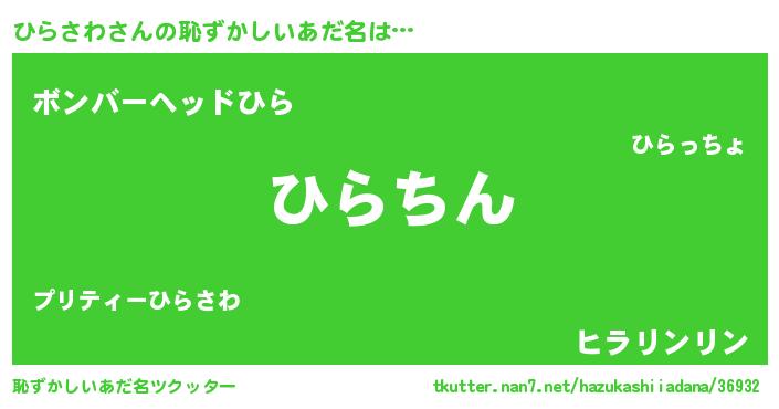 | 意味不明あだ名 | 『永久保存ひらさわ』 |