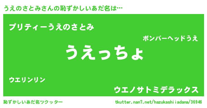 | 男性向けラノベタイトル風あだ名 | 『ウエノサトミスレイヤー』 |