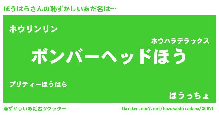 | ヒーロー風カッコイイあだ名 | 『慈愛の使者ほうはら』『暗黒騎士ホウ』 |