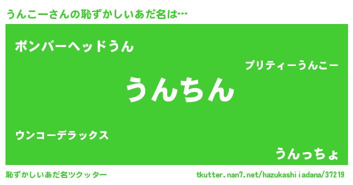 | 男性向けラノベタイトル風あだ名 | 『うんこーという概念が存在しない退屈な世界 』 |