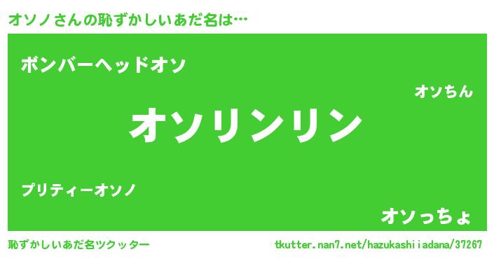 | 男性向けラノベタイトル風あだ名 | 『オソノの嫁は女の子じゃないと思った?』 |