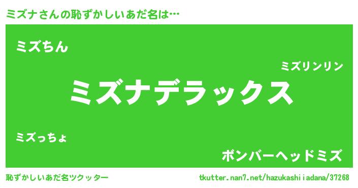 | 意味不明あだ名 | 『自称ミズナ』『めかぶ科ミズナ属』 |