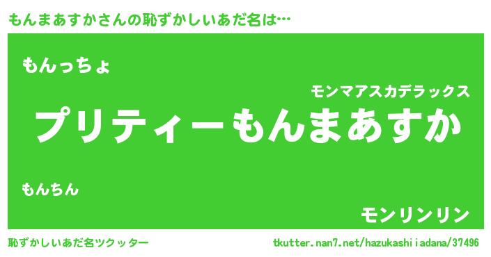 | 女子向けラノベタイトル風あだ名 | 『(仮)もんまあすかのやんごとなき事情』 |