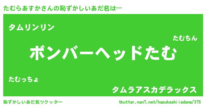 | 意味不明あだ名 | 『眠気覚ましガムたむらあすか味』 |
