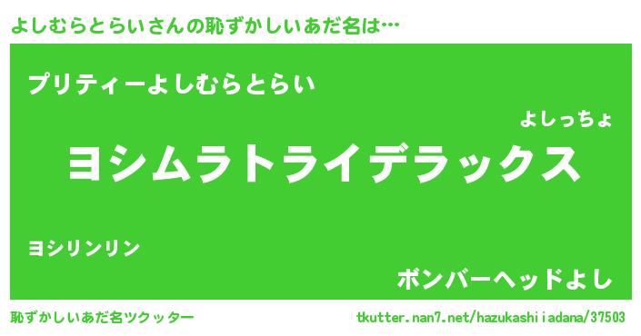| 肩書あだ名 | 『よしむらとらい総統』 |
