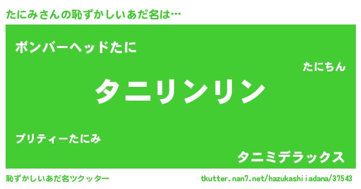 | 男性向けラノベタイトル風あだ名 | 『たにみの嫁は女の子じゃないと思った?』 |