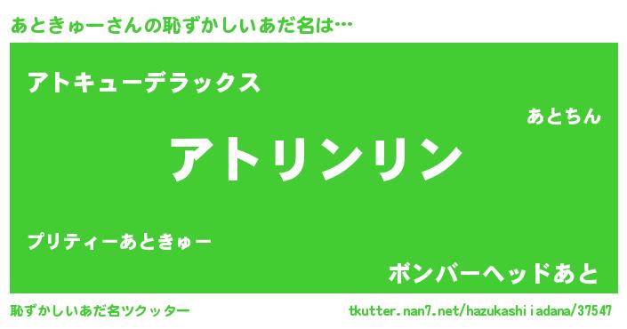 | ヒーロー風カッコイイあだ名 | 『黄金騎士アト』『最強戦士アトキュー』 |
