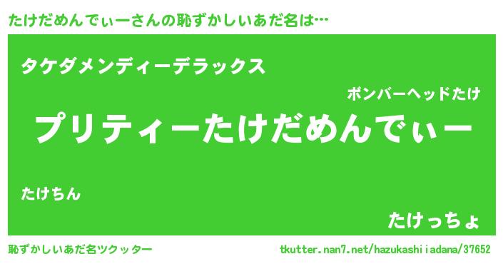 | 男性向けラノベタイトル風あだ名 | 『たけだめんでぃーの憂鬱』 |