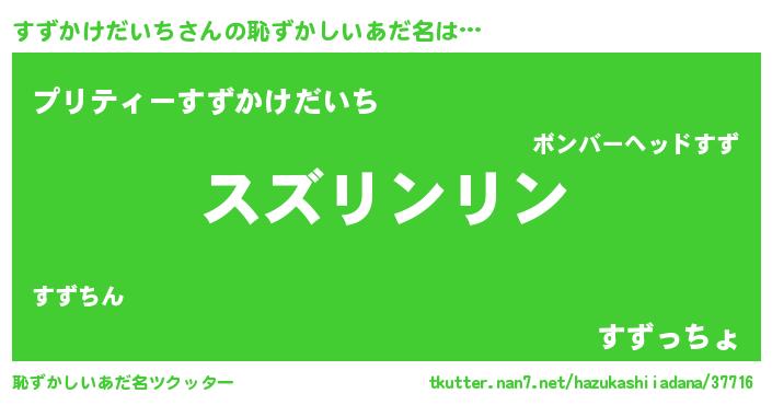 | 男性向けラノベタイトル風あだ名 | 『すずかけだいちの嫁は女の子じゃないと思った?』 |