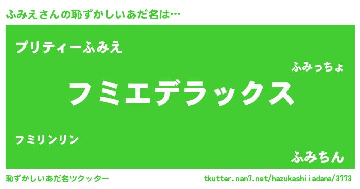 | 女子向けラノベタイトル風あだ名 | 『ふみえなんてお断りですっ。』 |